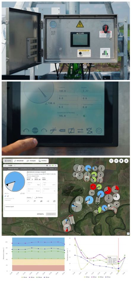 Field Connect – это умная система, которая позволяет автоматизировать полив в любой компании. Она объединяет в одном приложении управление самыми разными устройствами: дождевальными машинами любых производителей, насосными станциями, датчиками влажности почвы, метеостанциями и даже дизельными генераторами. Всё это работает как единый «пульт управления», делая полив более эффективным, экономным и простым.